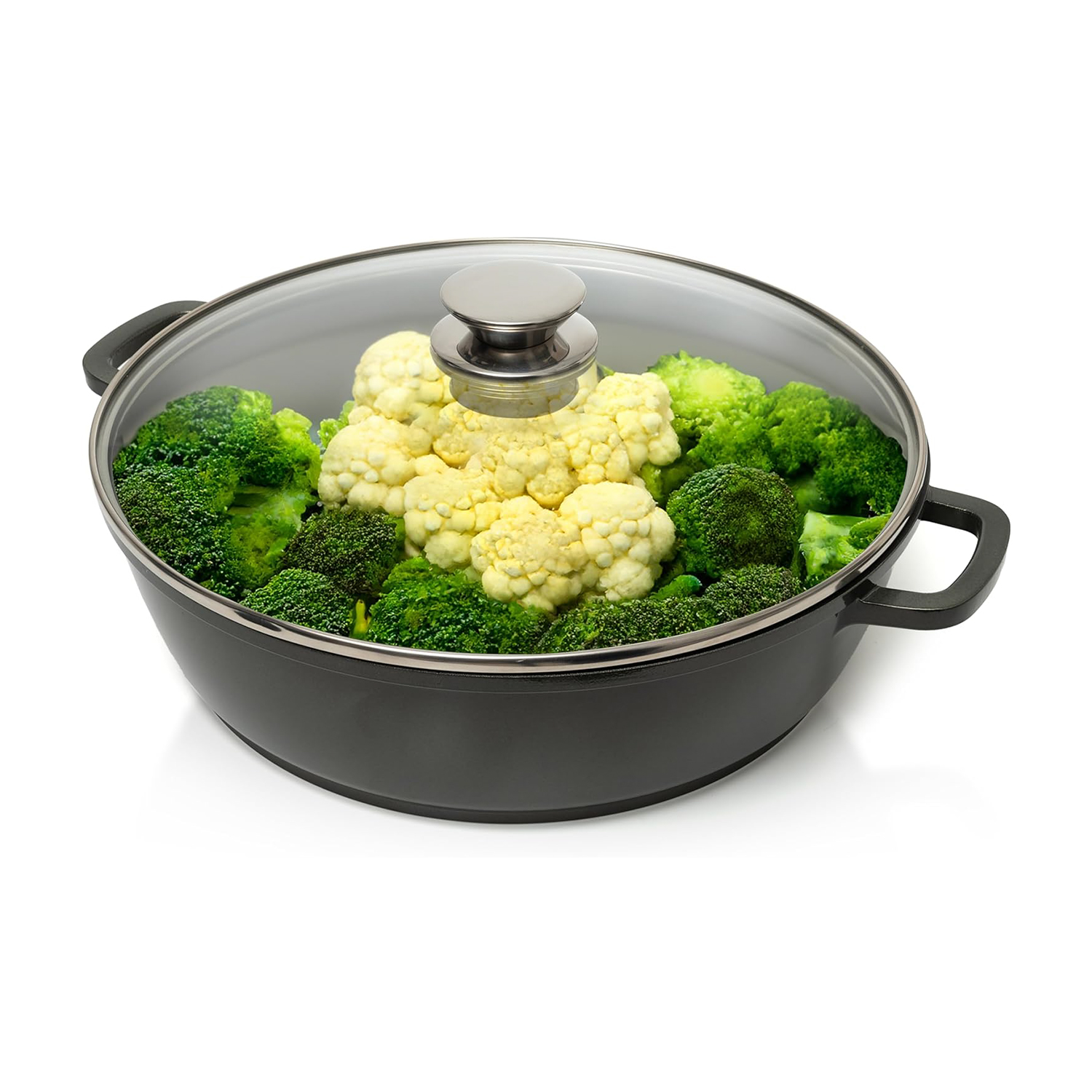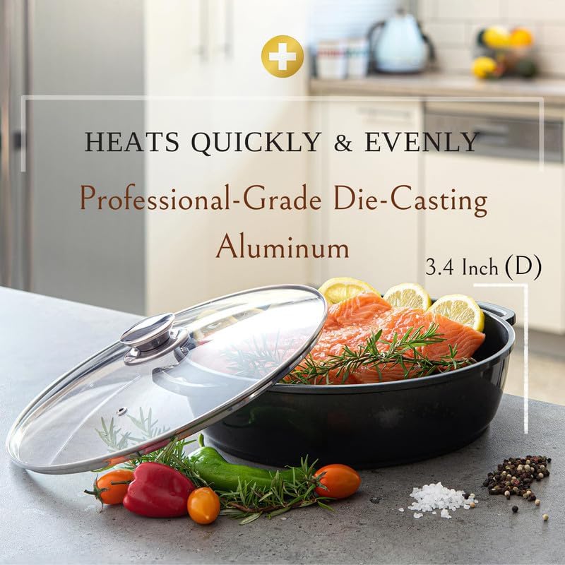 Tempered Glass LidsDurable, tempered glass construction for everyday use. The12-Inch nonstick frying pans lets you fry, brown, and saute foods, and sloped sides make it easy to toss, flip, and stir-fry. |