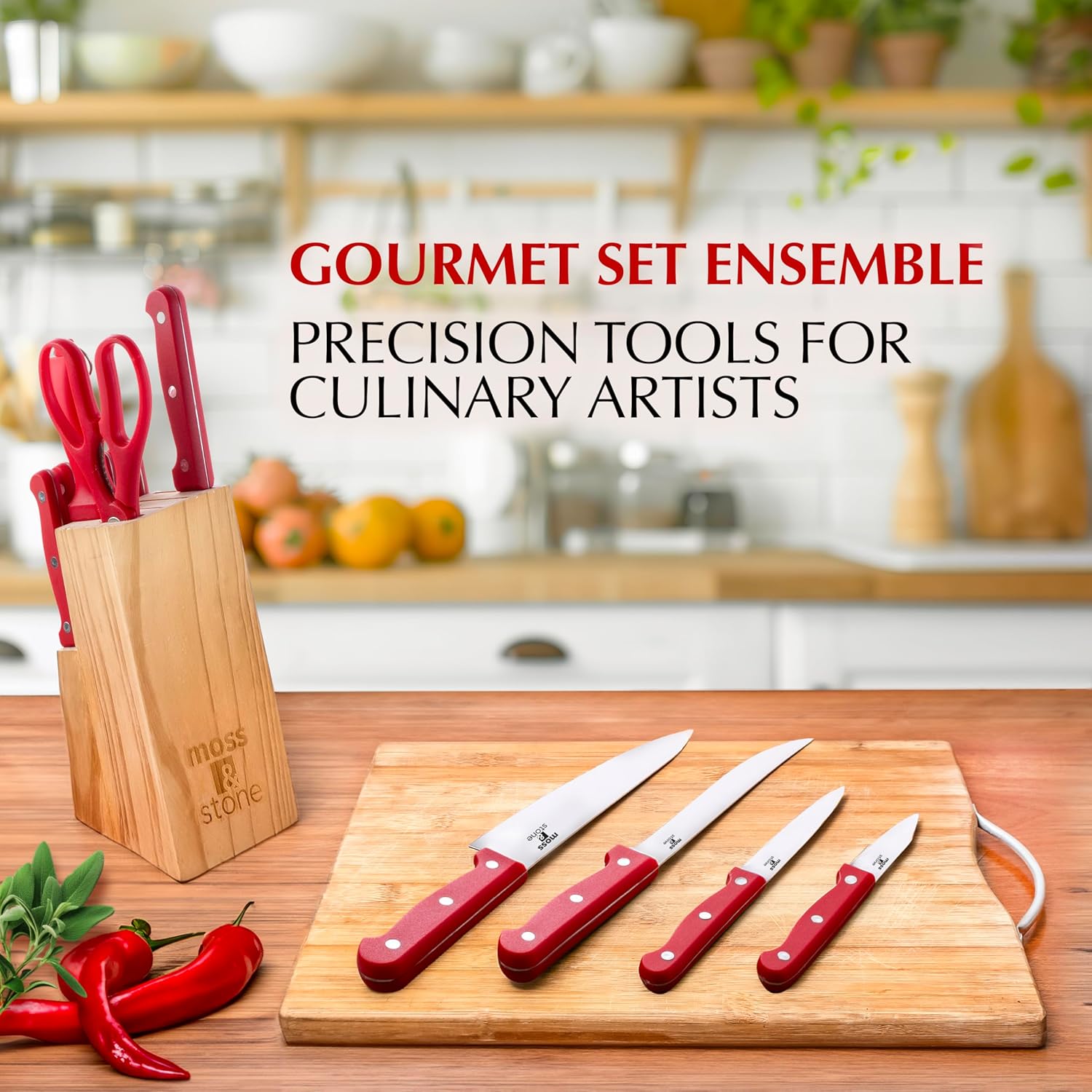 Moss & Stone is a famous company in the field of kitchen appliances & coffee accessories. We are proud to sell you our kitchen knife sets which is one of our best sellers. It’s a unique kitchen knifes made of top materials, sharp & strong knife. We offer our kitchen items at an amazing sale, so that you can enjoy a good & knife block with knives, and to add it to your home kitchen gadgets!!