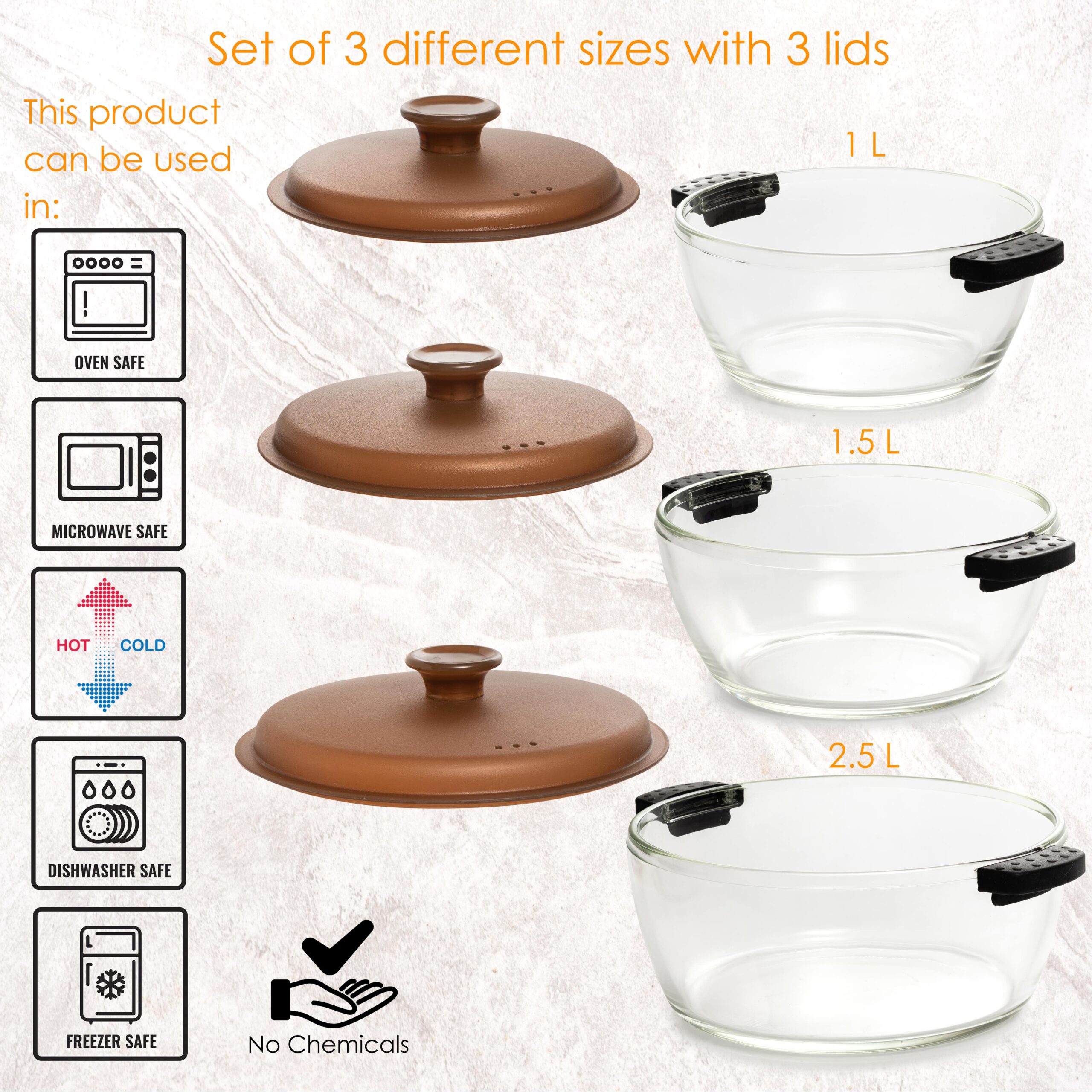 3-Piece Glass Casserole With Covered, 2.6/1.5/1 Qt Durable Bakeware Set, Borosilicate Glass Bowls, Bakeware Dish Oven Safe, & Microwave Safe, Clear Glass Baking Dish