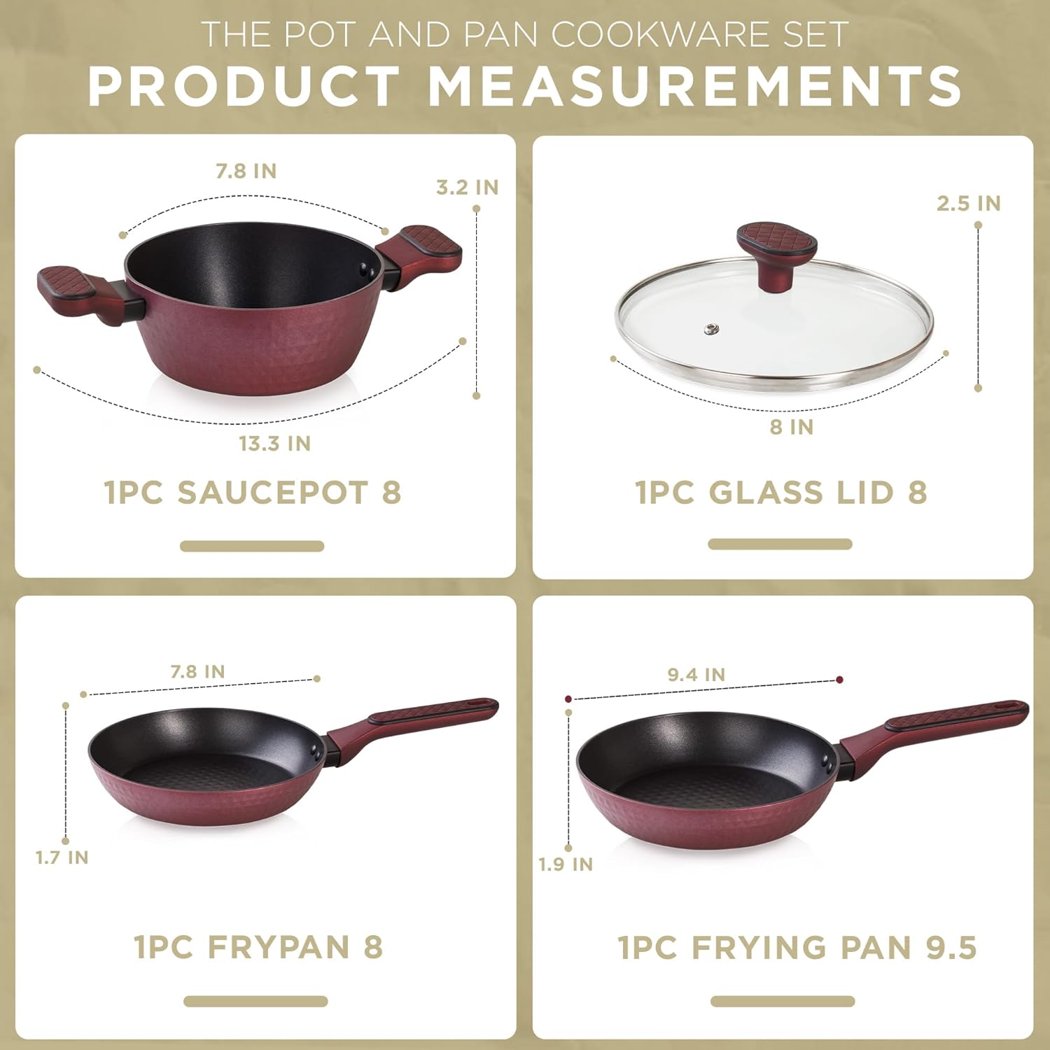 | Size | 1 saucepot 8″, 1 frypan 8″, 1 frying pan 9.5″ |