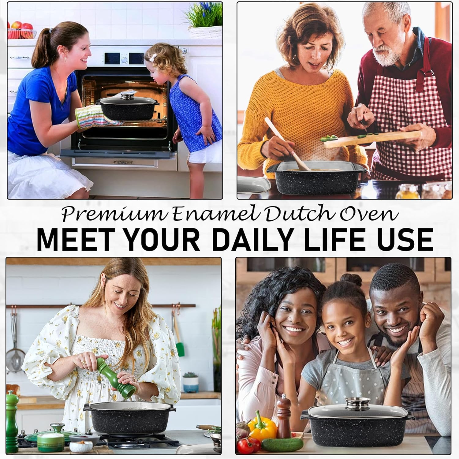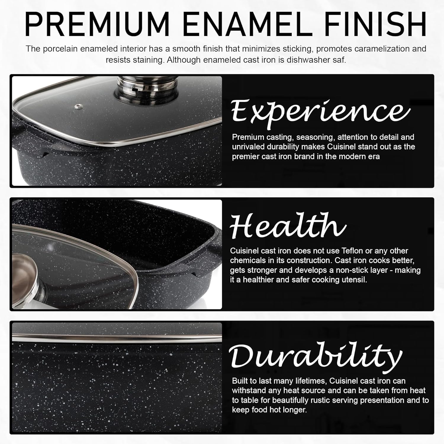 • Multi-Use Deep Baking Pot: This roaster pot with lid is die-cast aluminum; it is difficult to deform, and the quality is more stable and durable. Perfect for baking, broiling, grilling, or serving; cook fish, meat, pork, and vegetables, as they will get perfectly cooked/roasted without burning.