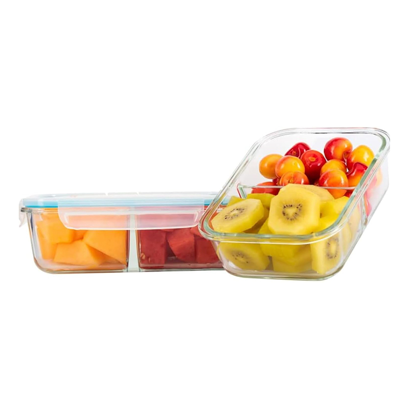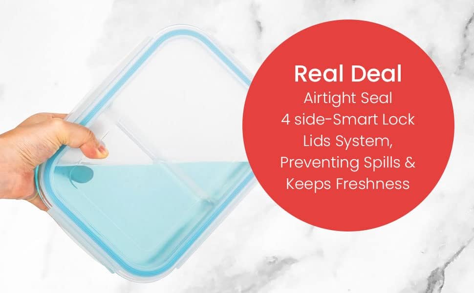 The 4 Side-locking lids seal our borosilicate glass food Container set tightly, to prevent sauces or dressings from spilling and protecting your food from dust and water vapor.