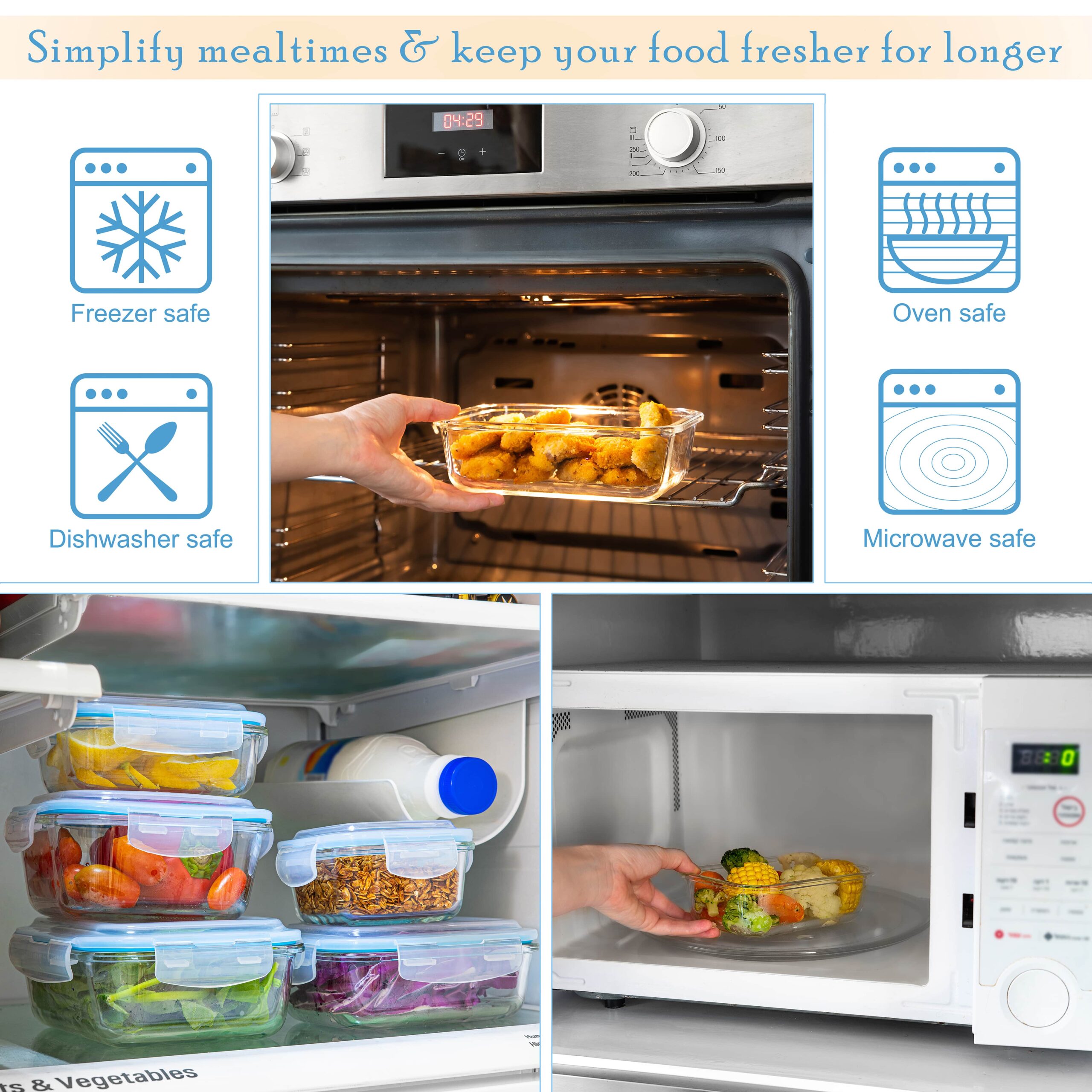 Storage Safer/ConvenienceOur glass set is safe in the microwave, oven, freezer, and dishwasher (not the lids)! Perfect for storing leftovers, packing lunch – for school or work, meal prepping, or just tossing a snack in your bag on the go! And it’s a stackable glass food storage containers! |