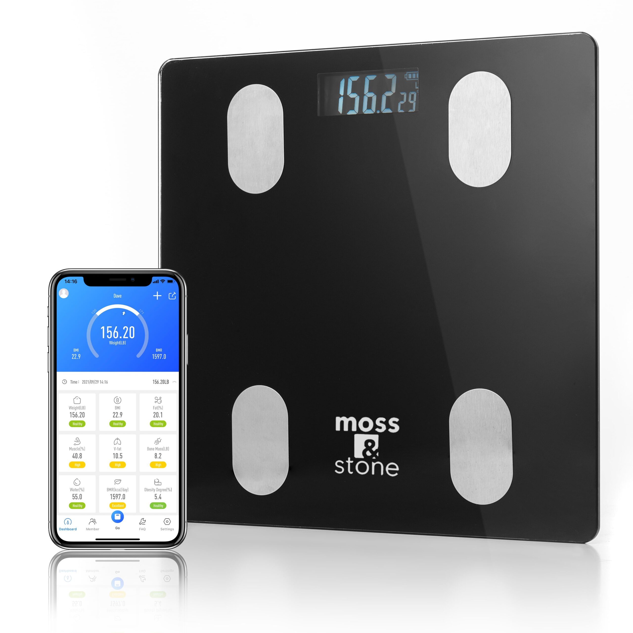 Moss & Stone is a famous company in the field of kitchen appliances & bathroom accessories. We are proud to sell you our digital bathroom scale which is one of our best sellers. It’s a unique scale with body fat and water weight made of top materials, that you will able to get accurate results using the fit track scale high-precision sensors and bioelectric impedance analysis. We offer our weighing scale at an amazing sale, so that you can enjoy a good & cheap weight scale!